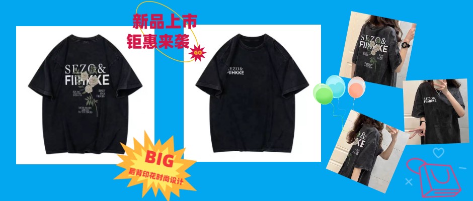 美式复古做旧水洗前后印花字母短袖T恤女夏宽松上衣半袖体恤