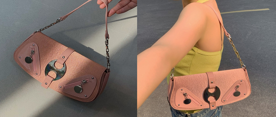 Paroparo靡光冰丝!原创设计小众辣妹双孔金属环反光斜挎包腋下包