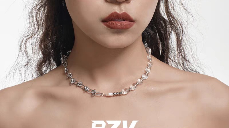 模棱两可不对称夏天冷淡风中性水晶串珠choker项链个性