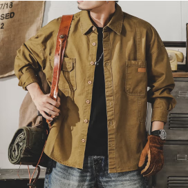 男士长袖衬衫男宽松工装衬衣男生休闲外套春秋款黑色纯棉大码