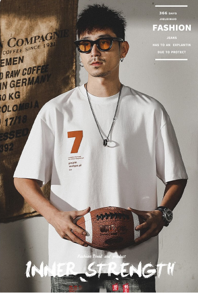 夏季纯棉潮牌宽松大码男款半袖体恤衫 白色 M(体重100-120斤)