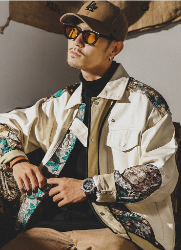 依郎酷高街刺绣牛仔外套男宽松2023春季美式复古工装夹克男士帅气外衣褂 白色 L(体重120-140斤)