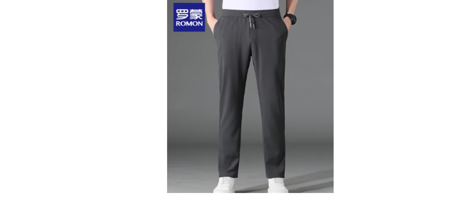罗蒙(ROMON)【2件到手79.8】冰丝休闲裤男新款青年男士弹力直筒松紧速干男裤 深灰 L(建议110-130斤)