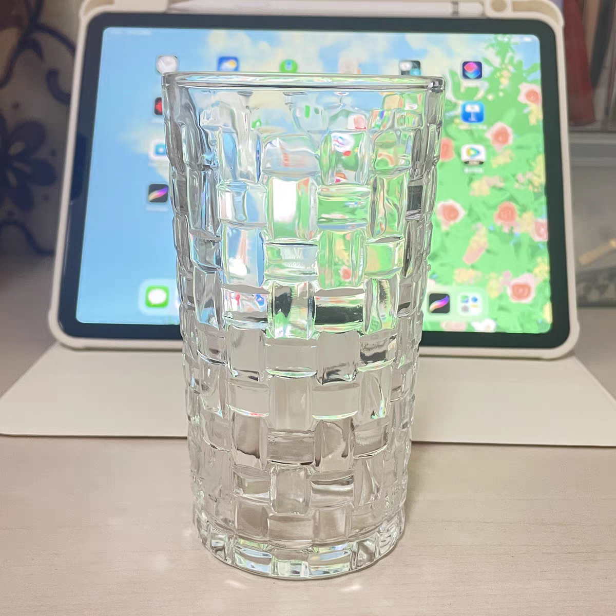 藤编玻璃杯ins 清新森系家用浮雕水杯果汁咖啡冷饮杯创意网红博主