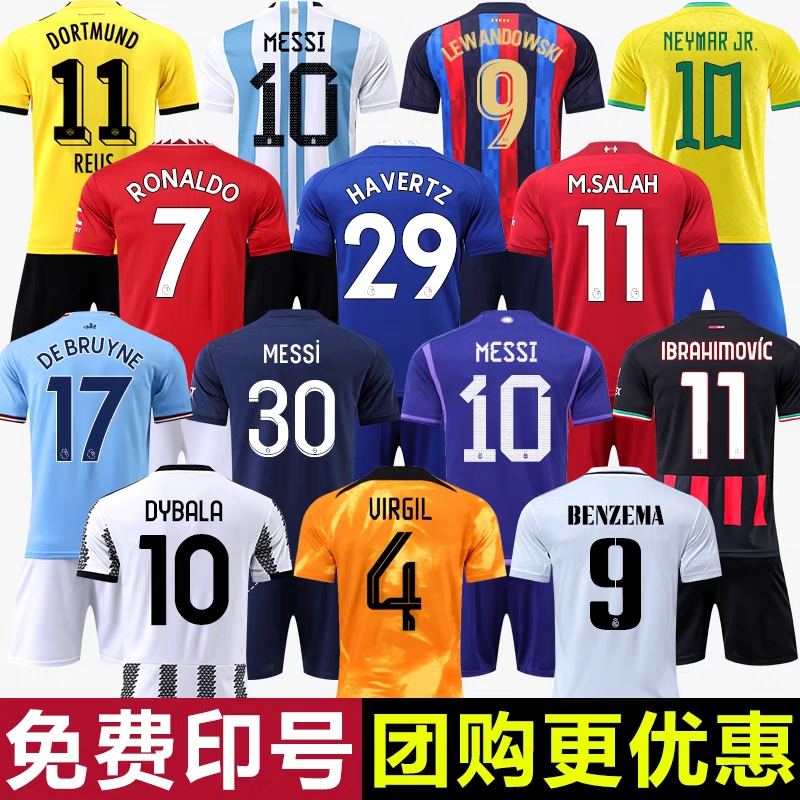 足球服套装男比赛运动训练服定制印字阿根廷皇马巴黎巴萨梅西球衣