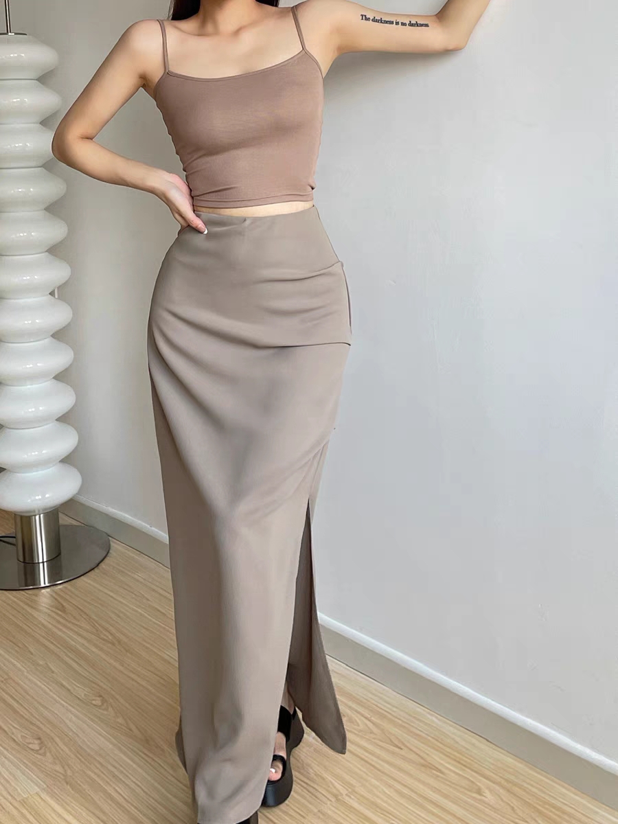 辣妹高腰包臀工装开叉半身长裙