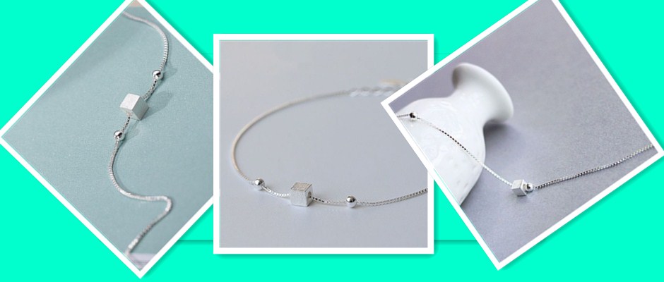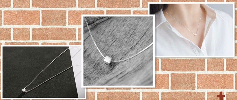 s925纯银项链女韩版简约个性几何方糖吊坠气质颈链时尚百搭锁骨链