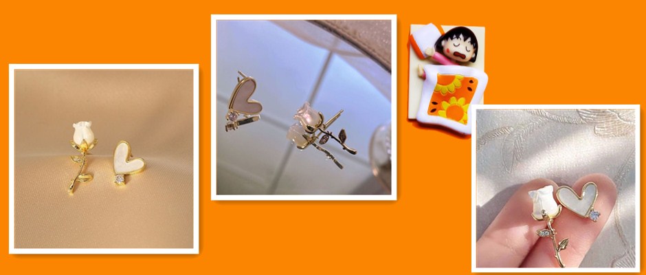 纯银耳钉女春夏ab款不对称复古玫瑰花爱心小众设计法式轻奢精致小巧耳环