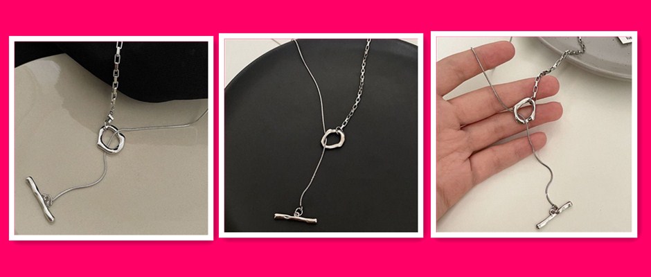 纯银拼接ot扣卫衣项链女秋冬轻奢小众高级感配饰设计感长款毛衣链