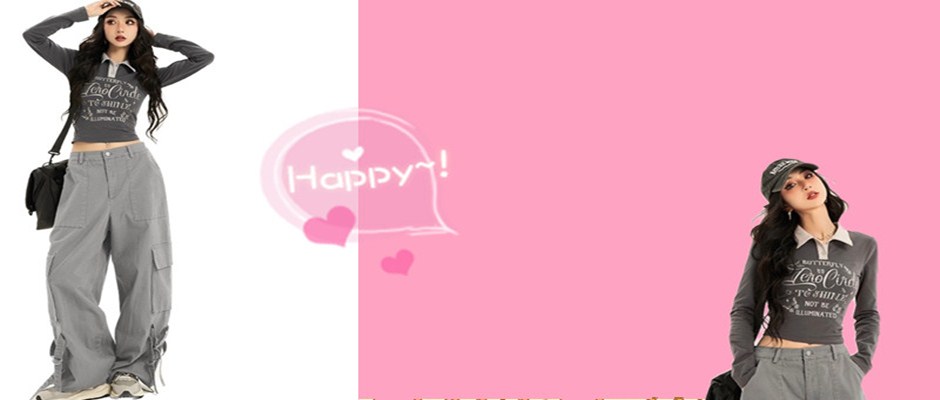 灰色polo领长袖t恤女春秋季美式复古紧身短款上衣