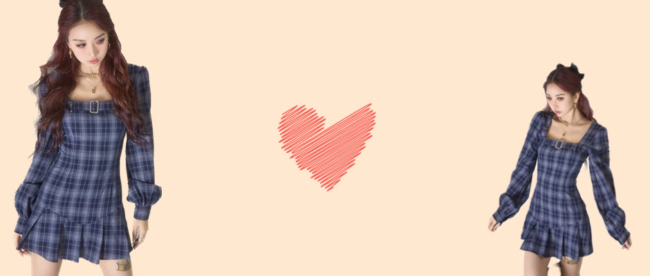 格子泡泡袖方领连衣裙女春法式显瘦收腰百褶短裙子