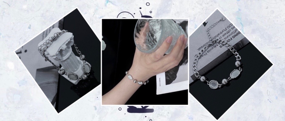 新款圆珠猫眼石手链女夏个性冷淡风手环欧美嘻哈酷潮手饰品