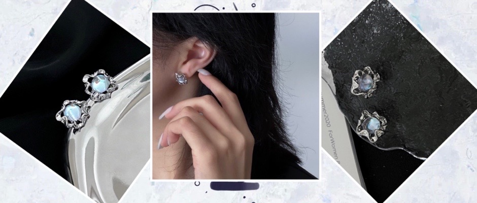 液态金属月光石耳钉个性夏季新款耳环潮流时尚耳饰品