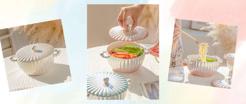 餐具家用陶瓷汤碗泡面碗学生双耳碗德鲁