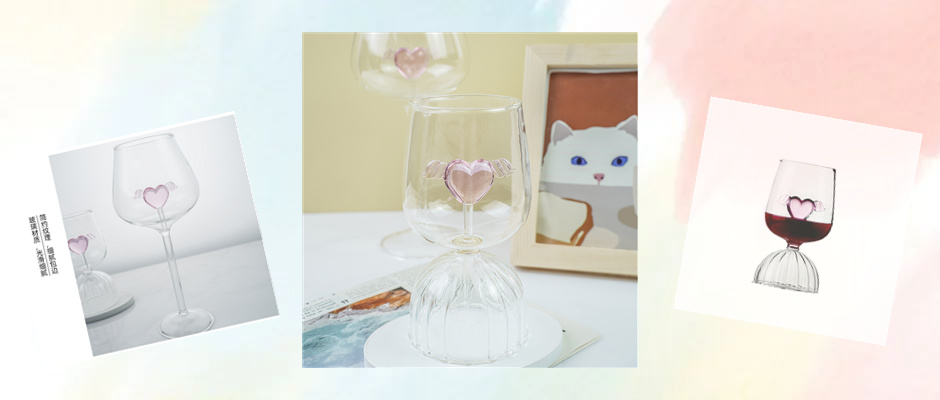 酒杯ins高级感爱心玻璃高脚杯套装飞心