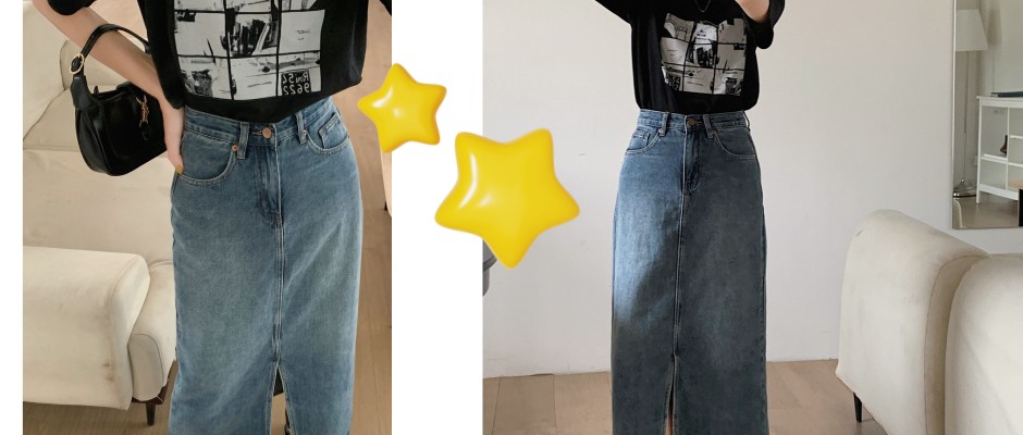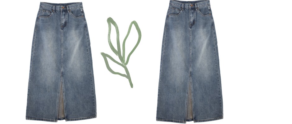 开叉牛仔半裙2023新款简约复古蓝长款a字女式牛仔裙