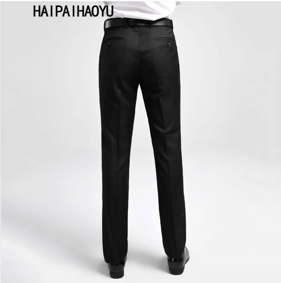 HAIPAIHAOYU 西裤男商务正装裤修身长裤子免烫中低腰直筒裤西装裤 黑色西裤 XL/32