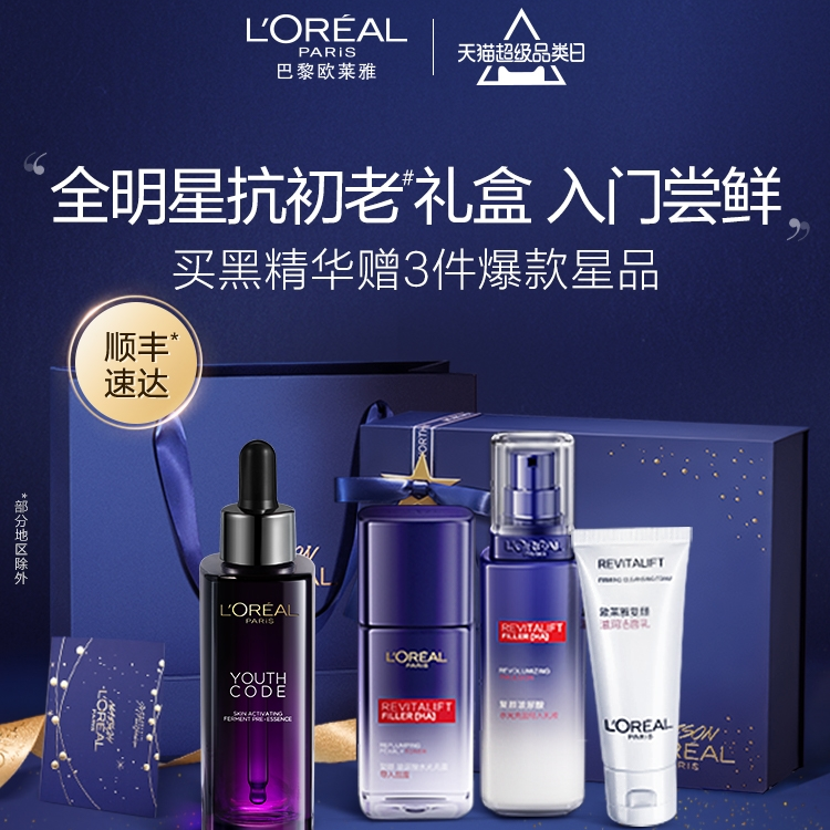 欧莱雅黑精华水乳套装紧致抗初老精华液抗皱补水保湿淡纹护肤品