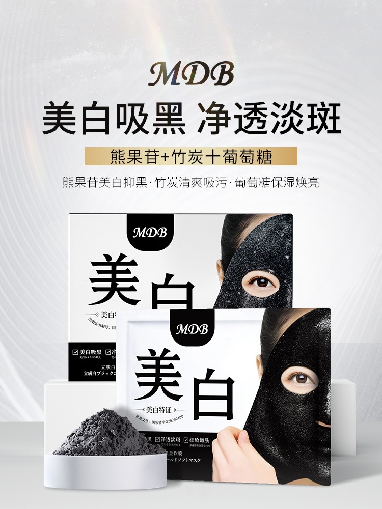 本产品中含有的竹炭具有多孔性,吸附能力强,轻松吸附脸部油脂污垢,特别添加熊果苷成分,能渗入肌底。本产品具有美白吸黑、净透淡斑、深层补水的功效,吸附力强,相比传统软膜粉更好更快吸收有效成分,能够持续48小时不干,使肌肤纹路之间贴合,使用后不需要特别护理,