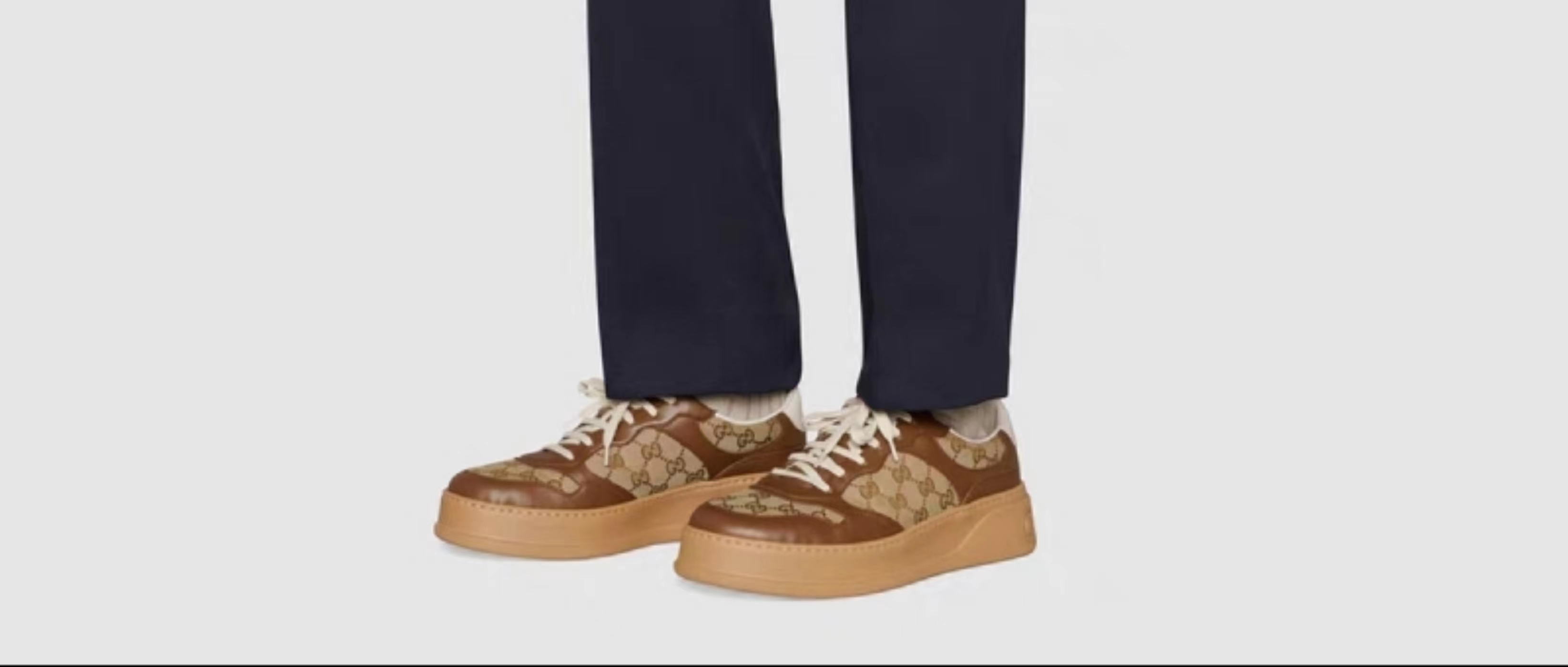 [明星款式]GUCCI古驰男士GG织带厚底运动鞋 34