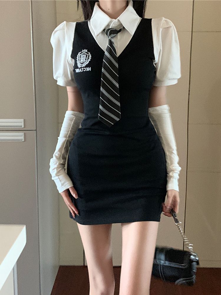 学院风时尚套装女装衬衫夏季包臀裙连衣裙裙子减龄显瘦两件套洋气