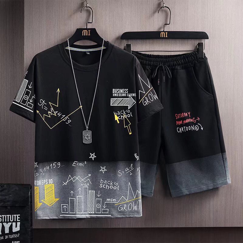 夏季冰丝套装男士短袖短裤套装男潮流时尚男装休闲套装男一套衣服