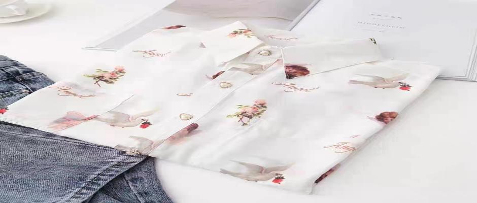 日系灯笼袖天使印花BF风复古港味少女设计感衬衣上衣长袖雪纺衬衫