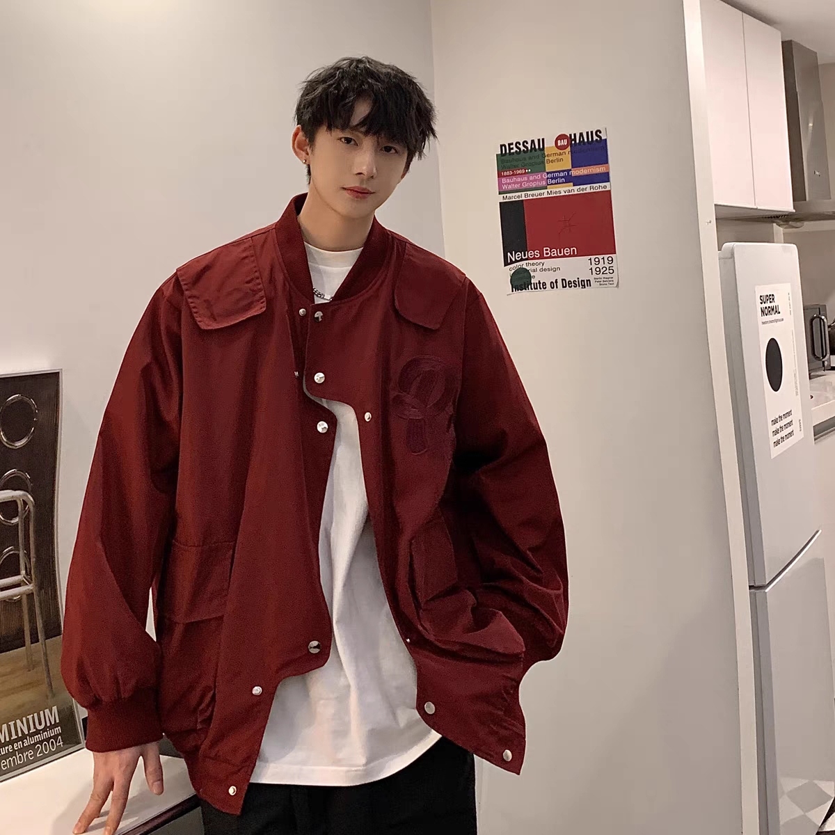 酒红色飞行员夹克男春季高级感外套潮流港风vintage美式R星冲锋衣