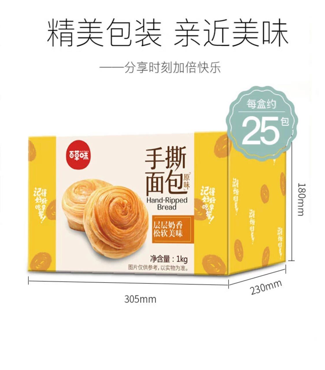 百草味手撕面包 早餐代餐蛋糕休闲零食小吃土司糕点