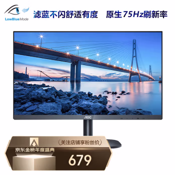 AOC 27英寸 75Hz 微框 IPS技术屏 广视角 低蓝光爱眼 电脑办公液晶显示器 27B2H