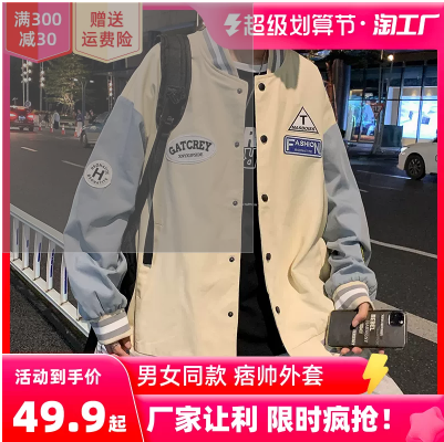 加绒夹克棒球服男春季韩版潮流宽松百搭上衣港风炸街痞帅学生外套