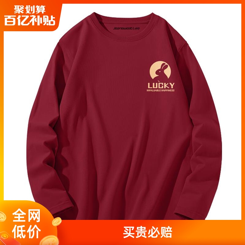 真维斯LIFE长袖t恤男卫衣纯棉男士体恤打底衫红色男款上衣男装M