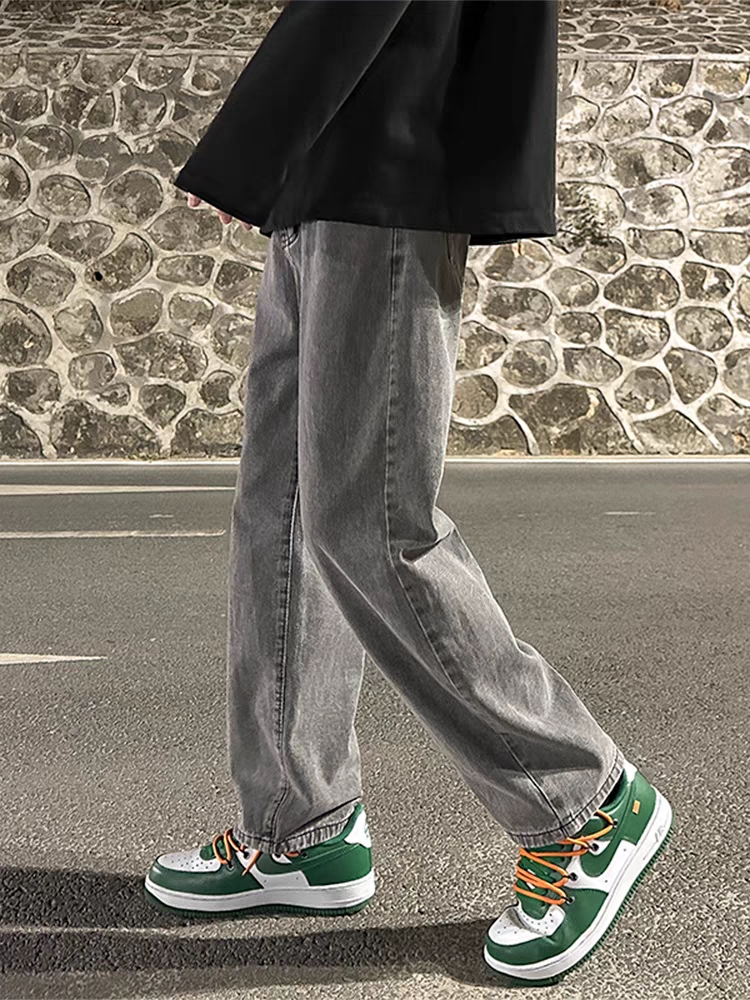烟灰色牛仔裤男生宽松阔腿裤子夏季薄款痞帅休闲潮牌高街直筒长裤