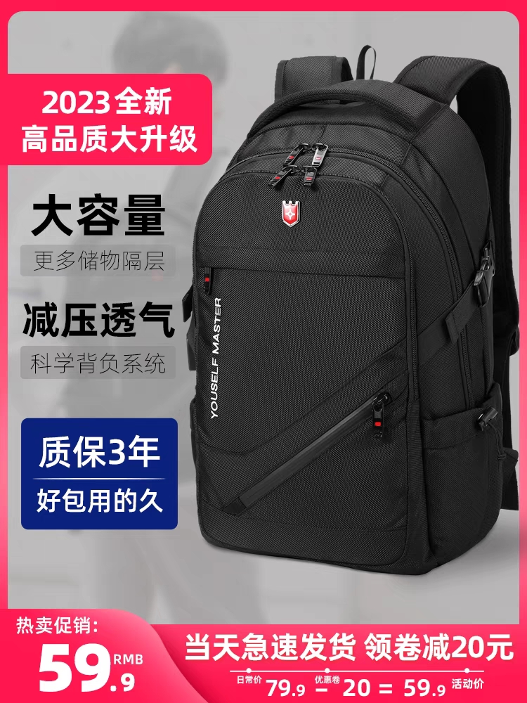 双肩包男士大容量商务旅行包电脑背包登山包初中高中大学生书包