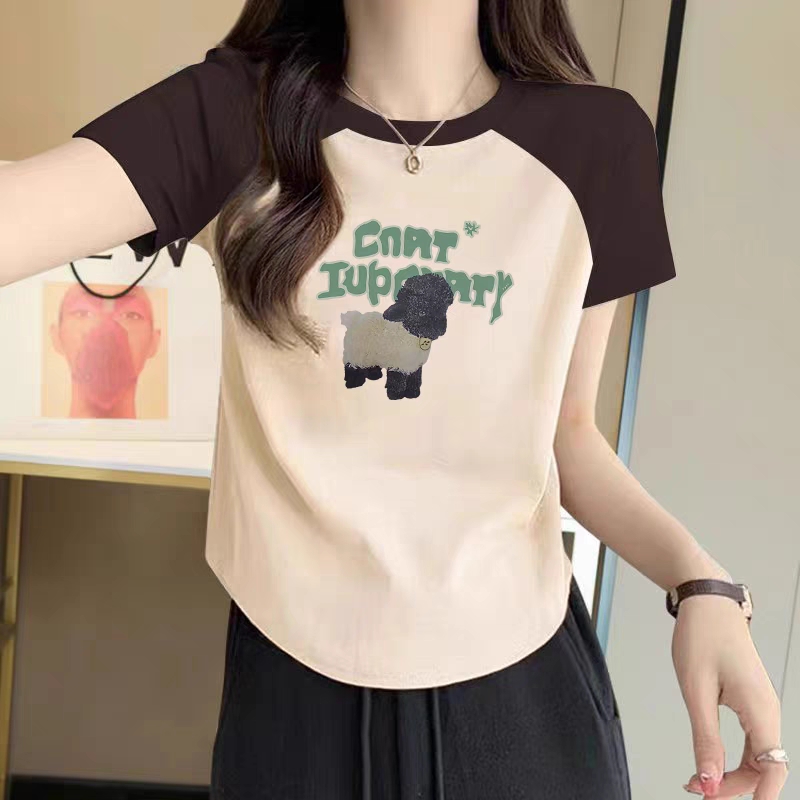 撞色短袖女夏季纯棉