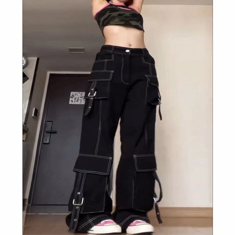 大码胖mm美式复古工装牛仔裤女2023年辣妹炸街高街多口袋阔腿裤潮