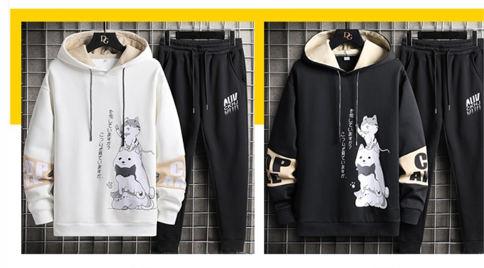 卫衣男春秋款休闲运动套装男士宽松连帽外套男衣服