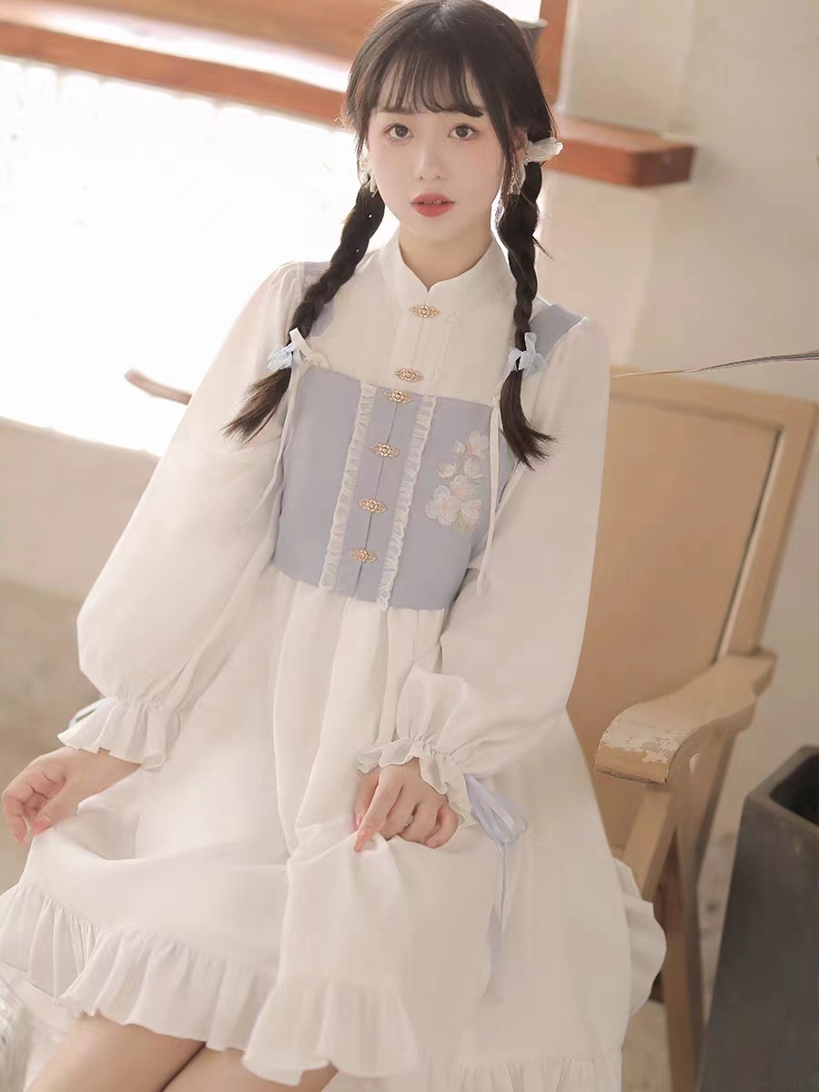 汉如初茉莉汉服女中国风改良日常汉元素连衣裙裙子两件套套装春秋 纯色 S