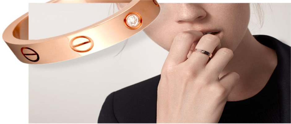 情侣/官方旗舰店LOVE戒指 玫瑰金黄金白金 窄版