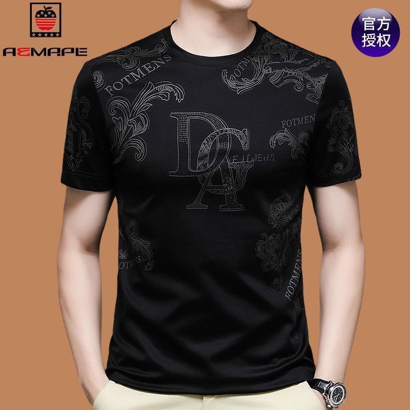 爱曼普男士短袖t恤桑蚕丝圆领夏季修身印花半袖体恤衫男装丅潮