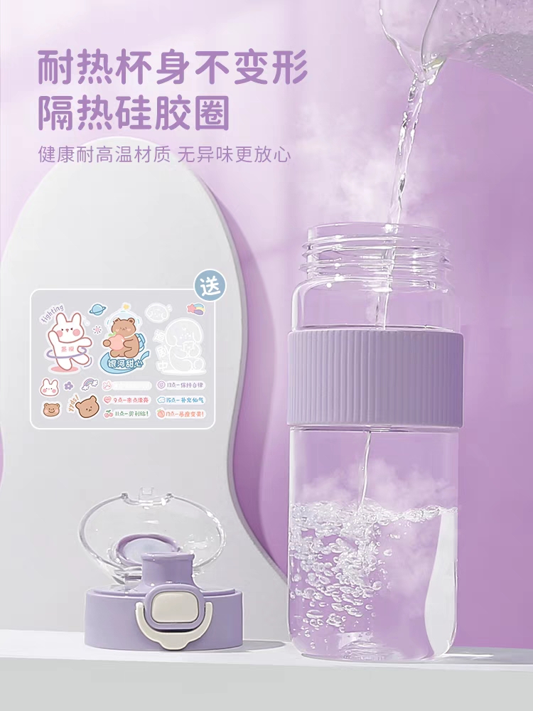 开的水直接倒进去都没有异味,也没有被烫软,都是耐高温材质,这的杯子还带 滤网虽然小功能还是很齐全的,塑料杯最大的优点就是比较轻,容量选择不大的情况下很适合外出的时候携带,这款比较简约,回来就用上了
