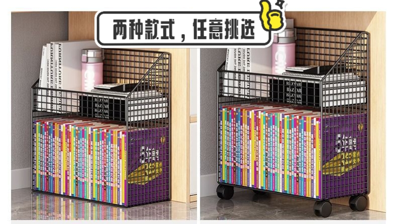 书桌旁小书架落地置物架课桌边侧立可移动带轮桌下书本收纳书柜子