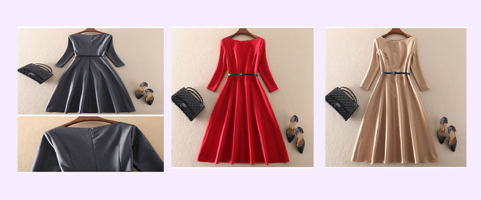 s55秋装新款气质优雅高端女装中长款显瘦A字裙七分袖一字肩连衣裙子