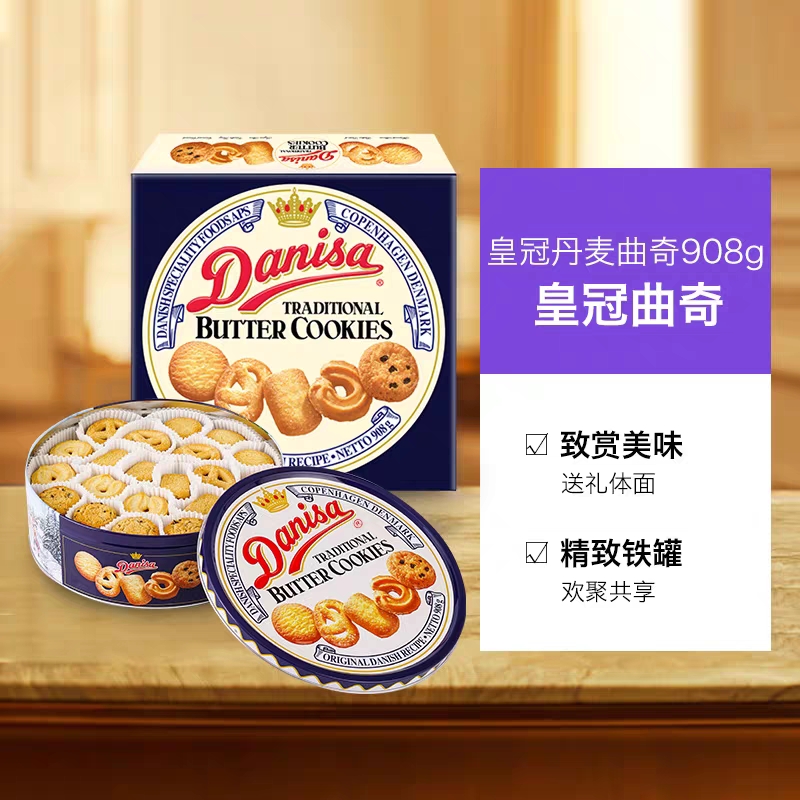 丹麦风味曲奇饼干礼盒装908g伴手礼整箱黄油大礼包零食品