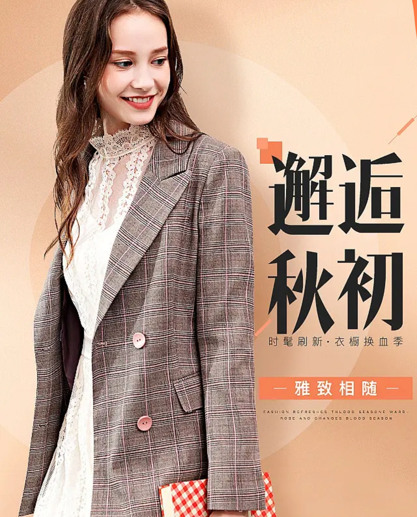 她池 【宽松格子衬衫外套】秋装女士时尚拼接设计感上衣