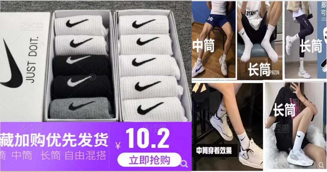 耐克袜子nike男纯棉防臭中筒袜运动篮球袜夏季长筒女袜短筒五双装