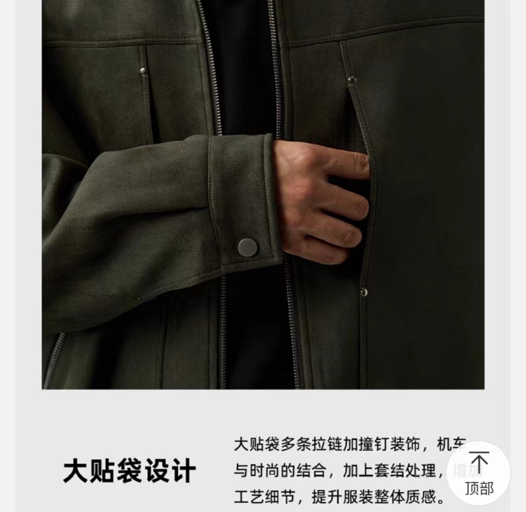 w2x春秋季翻领麂皮绒夹克男百搭工装外套高端休闲痞帅秋装上衣潮
