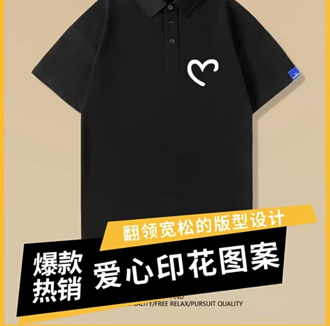 潮牌polo衫男士翻领t恤男短袖2023款夏季上衣宽松爱心情侣装体恤
