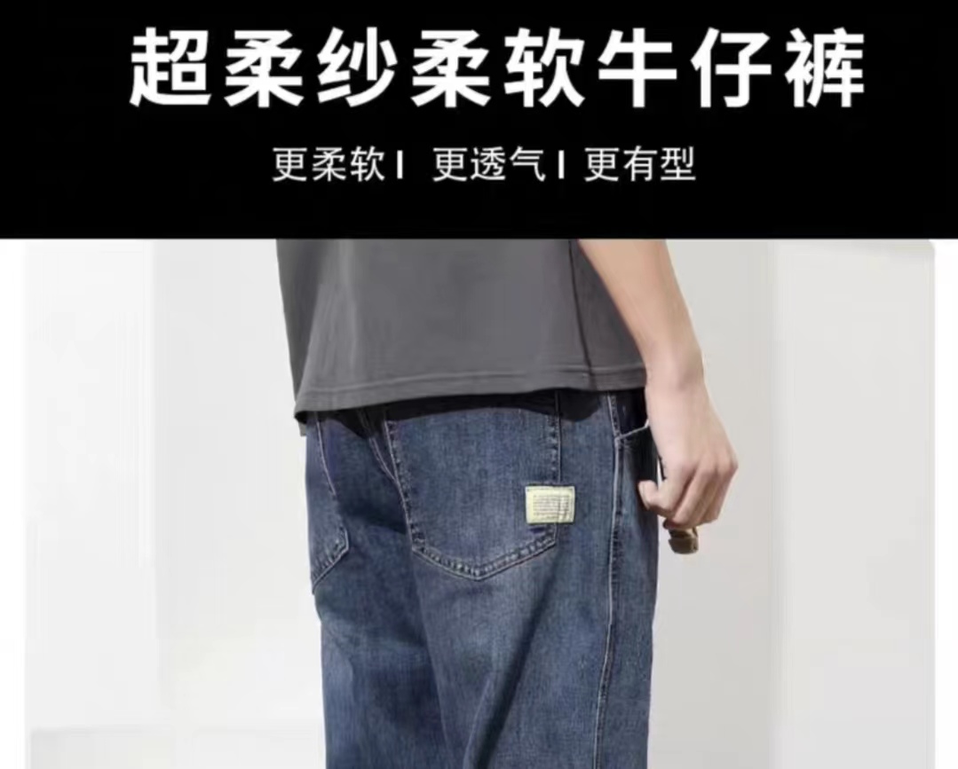 牛仔裤子男士夏季薄款宽松直筒裤休闲九分裤子男潮牌春秋工装长裤