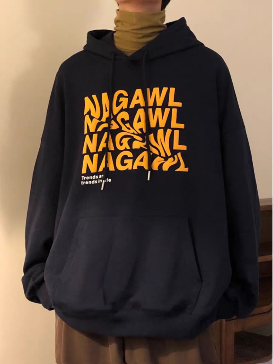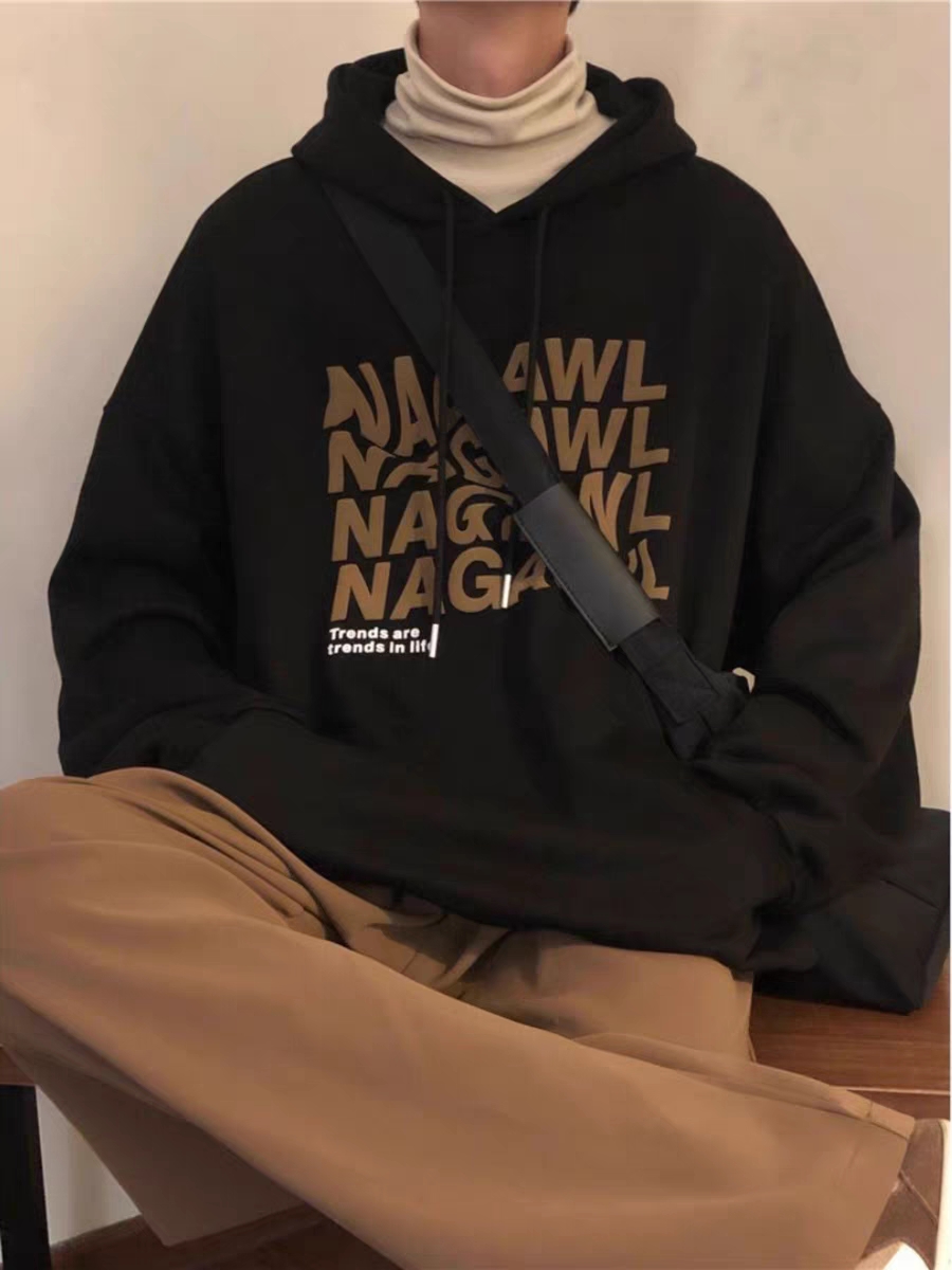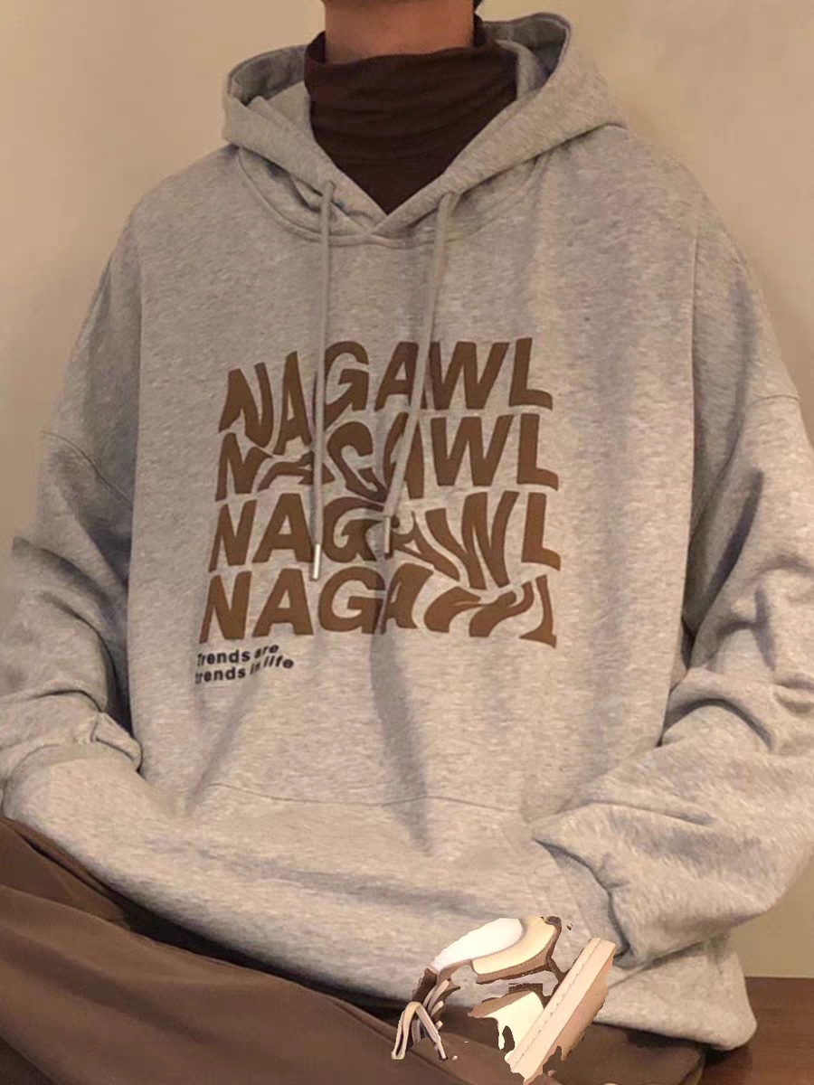 美式设计感连帽卫衣男生春秋小众复古套头衫纯棉宽松百搭加绒上衣